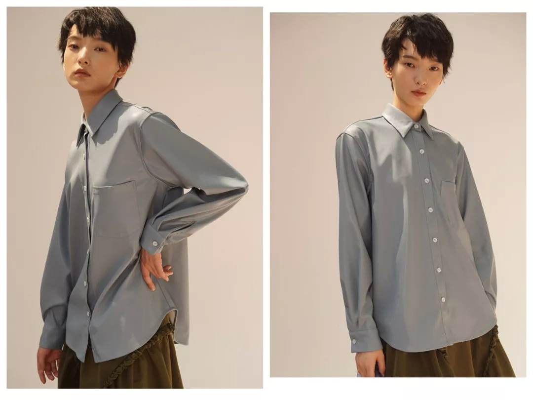Howl今年还有一件特别美的蓝色皮衬衫,材质是环保PU皮,但质感却和真皮超级接近。