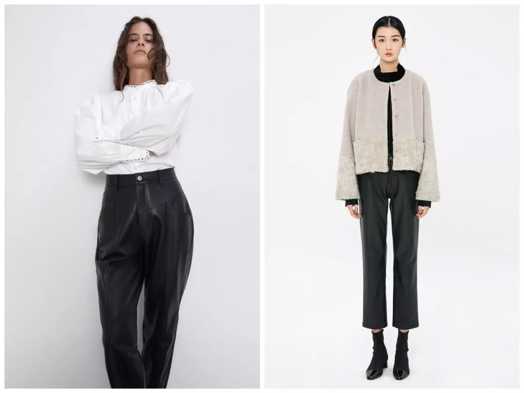 一般来说,黑色皮裤是基础入门款。Zara有出,饼boss也有买。追求质感的话,还可以试试这条Vacae的。