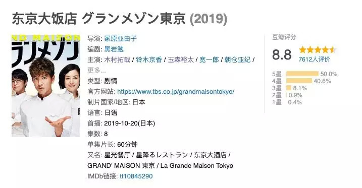 而公众喜欢这种故事吗?喜欢的。目前《东京大饭店》豆瓣评分8.8分,是木村拓哉近10年年来评分最高的影视作品。