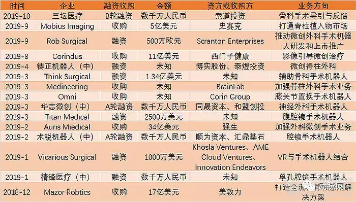 一年前的2018年12月,全球医疗器械的龙头企业美敦力以17亿美元收购Mazor Robotics及其机器人辅助手术平台。这次收购成为了当时医疗机器人领域规模最大的收购案。