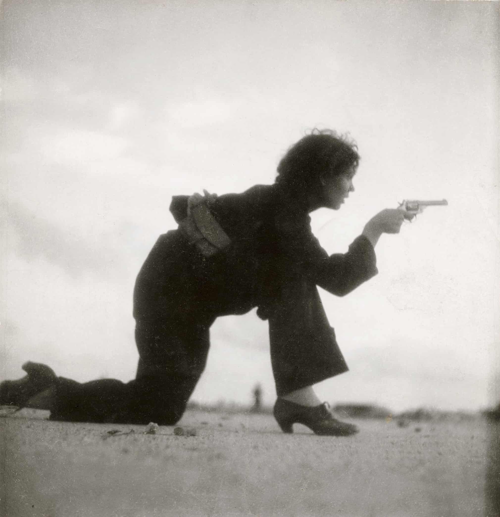 女性一直都是战争的一部分,但通常都是战争所带来的侵略和暴力的受害者。她们也曾加入到战斗人员的行列。塔罗所拍摄的西班牙内战的照片中,有一张黑白照片令人回味无穷。照片中,一位女性跪着用手枪瞄准射击。克里斯汀·斯彭格勒也曾为黎巴嫩和西撒哈拉的女战士拍过照片。