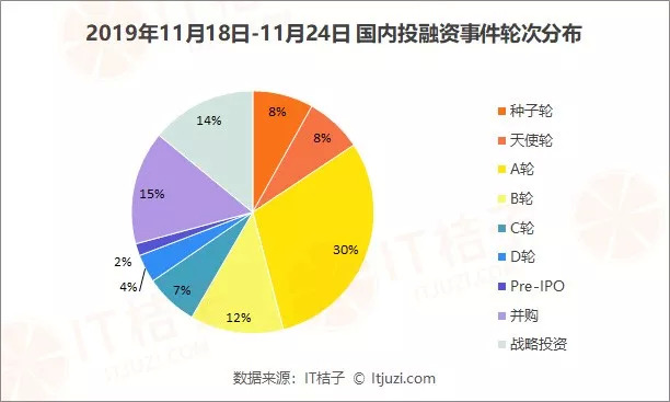 轮次分布来看,本周行业整合节奏加快。上周A 轮事件占比较大,发生 56 起,占比 30%;并购事件排名第二,发生 28 起,占比 15%;战略投资事件位列第三,发生 26起,占比约 14%。