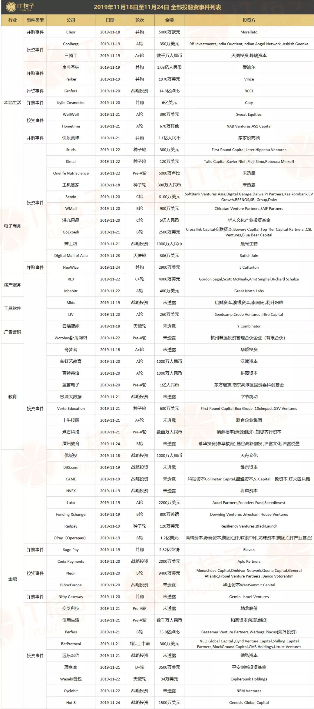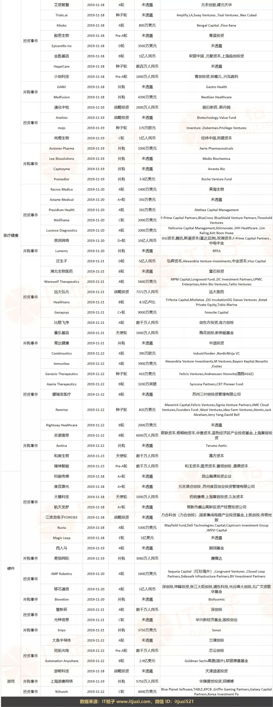 上周还有以下获投 1 亿元以上的投融资及重要并购事件值得关注: