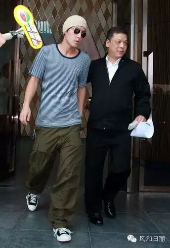 后来两个人被拽到了警察局,陈冠希依旧酷酷的模样,看起来心情并未受影响。