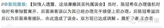而根据下面《新闻晨报》官微显示,用的是“知情人透露”,显然说服力不足。加上前面视频中,陈冠希有向周围群众取证,也有指向摄像头方向进行确认。