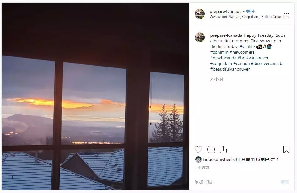 而且就在今天早上,Coquitlam山上已经出现了今年的初雪。看看这让人心醉的美丽景色: