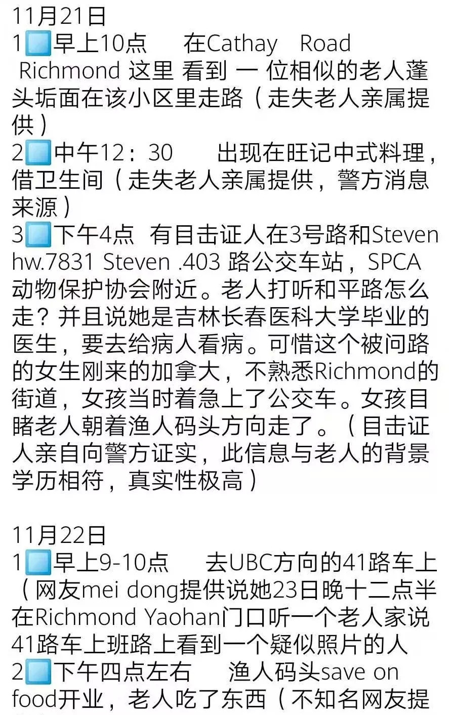 小编整理了目前为止列治文皇家骑警公布的最新消息和线索,希望给志愿帮忙寻找老人的热心市民提供参考。