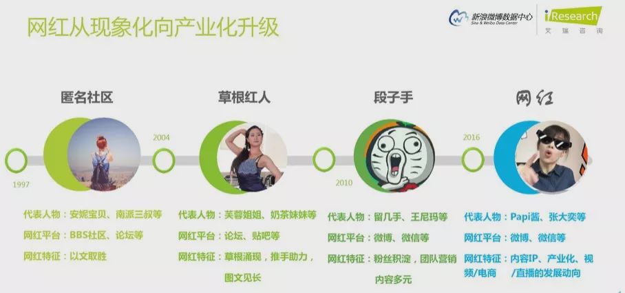 网红即是网络红人的简称,自20世纪90年代与互联网的诞生同生共息。网红历经从网络文学红人到草根红人再到如今的网红泛化的过程,其表现与实质都有了彻底性的变化。