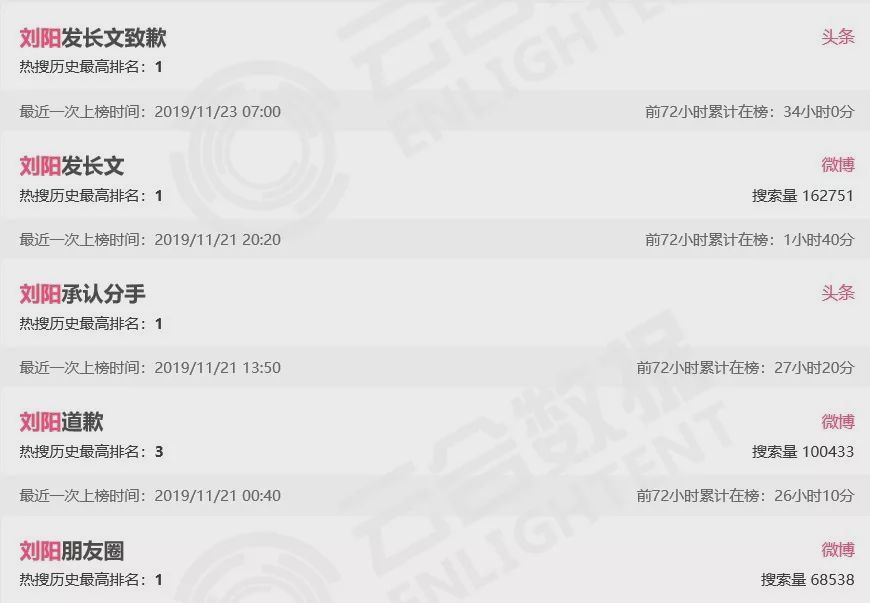 最近这段时间里,刘阳阿沁分手引起全网轰动,占据各大平台上共计13条热搜,长期居微博热搜榜第一;李佳琦翻车、李佳琦要出语音导航了、李佳琦式解说……凡是涉及李佳琦字眼的热搜几乎都能冲上榜首,搜索量也居高不下。