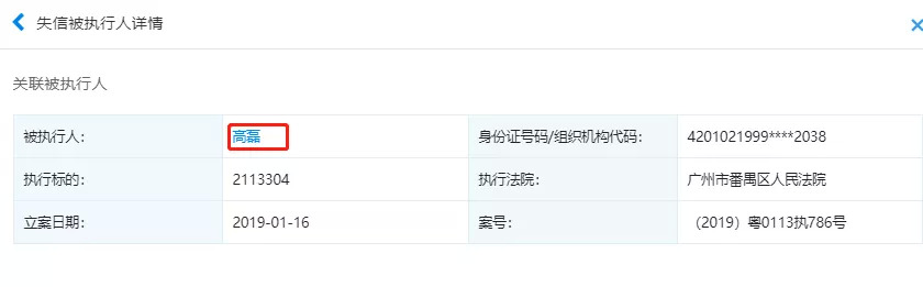 但这笔违约金,高磊并未支付,其本人被列为失信被执行人。