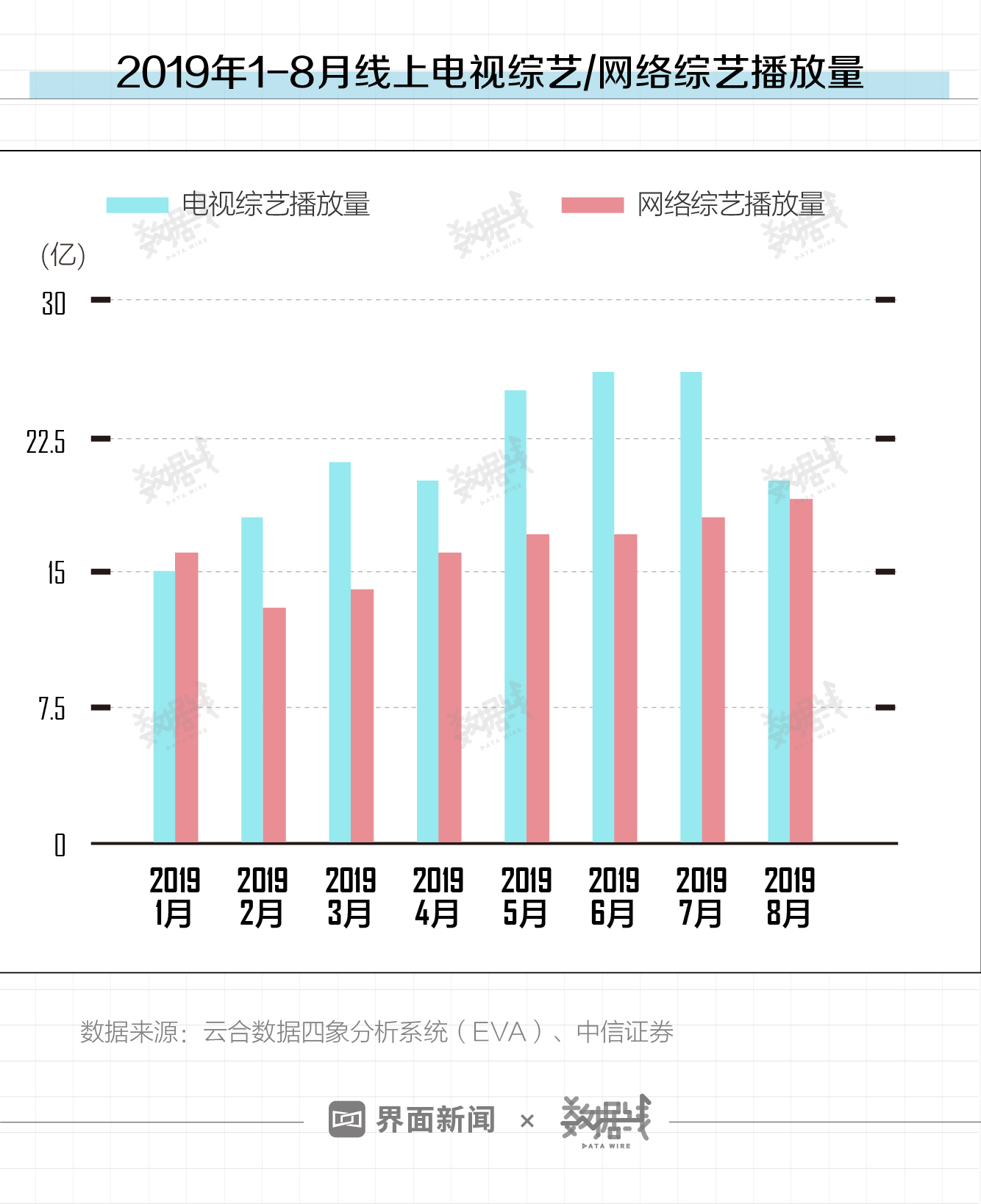 据云合数据和中信证券数据,今年1-8月,电视综艺和网生综艺在互联网平台的有效播放量比值约为1:0.76。虽然网生综艺起步较晚,但追击势头很猛,目前已是综艺市场的重要组成部分。