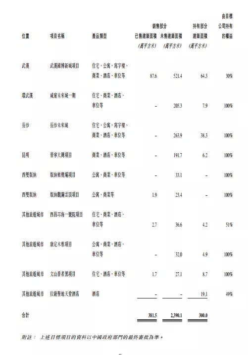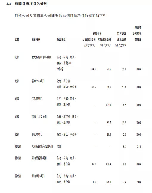 从项目构成来看,除了有成都的世纪城会展中心、环球中心等几个主打项目,还包括武汉、长沙、昆明等多个城市的共计18个项目。