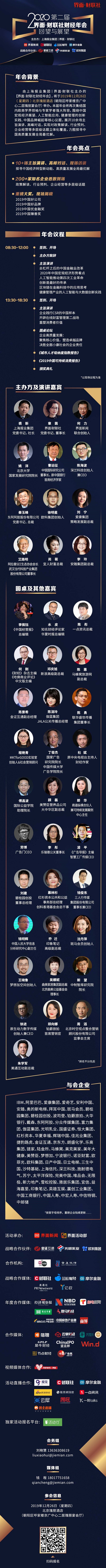 感知中国经济脉动,洞察未来发展新蓝图,由上海报业集团 | 界面·财联社主办的【界面·财联社财经年会】将于2019年12月26日(星期四)在北京瑰丽酒店正式拉开帷幕。年会围绕中国宏观经济展望、金融业全面开放、人工智能应用、健康管理的创新实践、中国品牌崛起等核心议题,展开10余场主旨演讲、高峰对话,实现对政策解读、行业预判、企业经营等多层级话题立体化覆盖,力图探寻中国高质量发展全局最优解。
