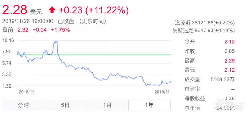 9月底发布第二季度财报后,蔚来的股价从3块多美元,一度下跌至1.32美元。年初3月份,蔚来的股价还一度接近10美元高位。