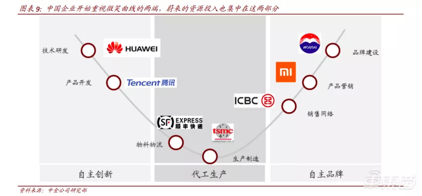 ▲中国公司正快速向微笑曲线两端投资