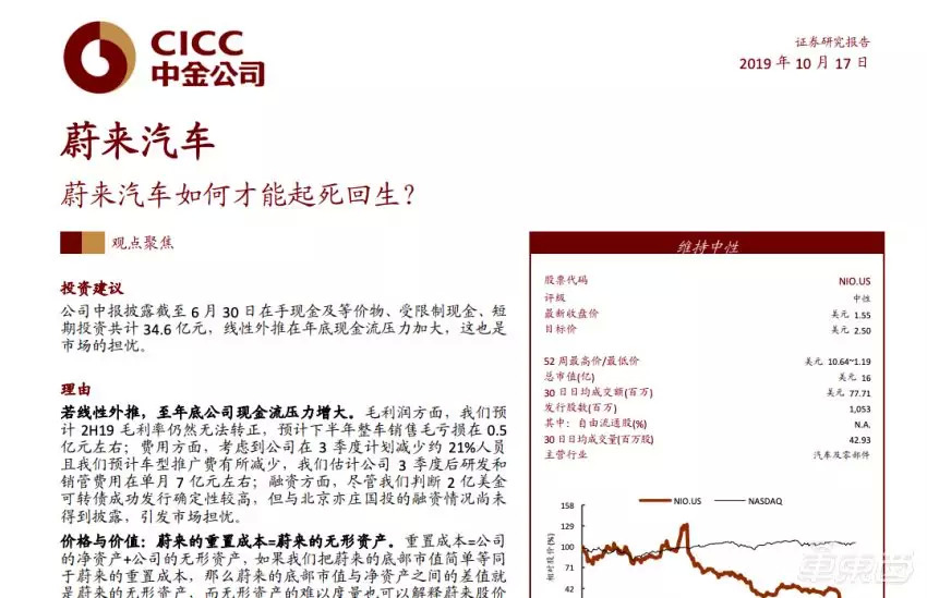 1、低股价不影响蔚来生死 无形资产决定股价走势