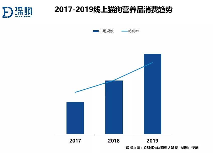 除了必需品主粮,维生素、益生菌、钙片等人类常用的营养品也在宠物市场悄然兴起。近三年宠物营养品消费比例稳步上升,宠物“养生”已不是新鲜事。