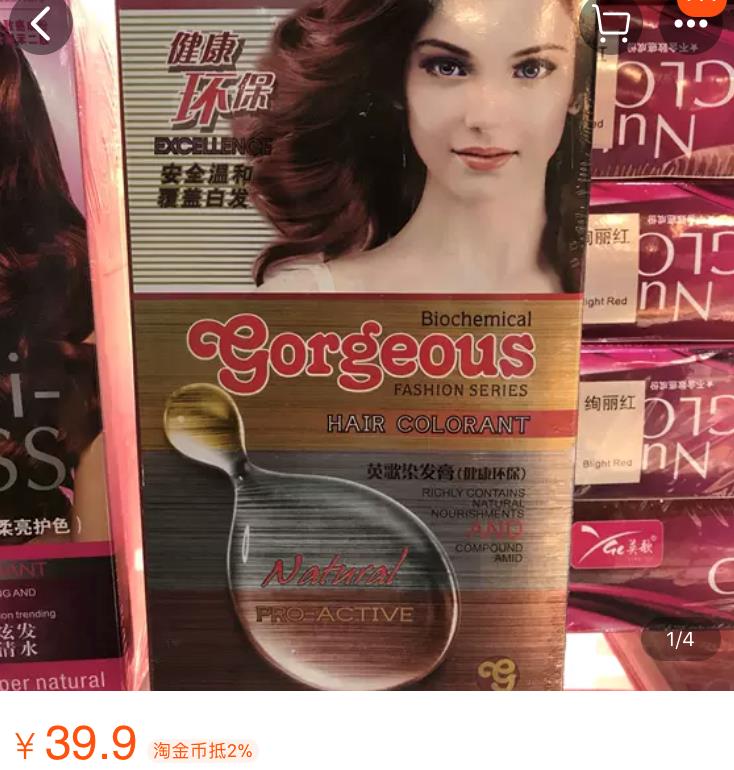 界面重庆在网络电商台上搜索发现,该款英歌染发膏(健康环保)有一家网店在销售,价格为39.9元。