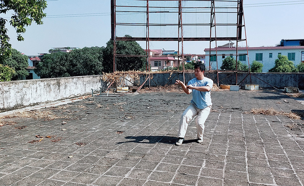 不同于“初学者”林翰,这个月刚满30岁的周奕声已接触太极拳近二十年。生于广东潮州饶平县的他从小跟父亲练习南拳基本功。当时父辈那代人有学武的风潮,“非典”那一年,父亲请来了太极拳老师,周奕声便开始了自己的业余太极拳生涯。大学毕业去北京工作后,他遇到了陈式太极拳的万周迎老师,接着便在太极书院做了五年的专职太极拳教练。