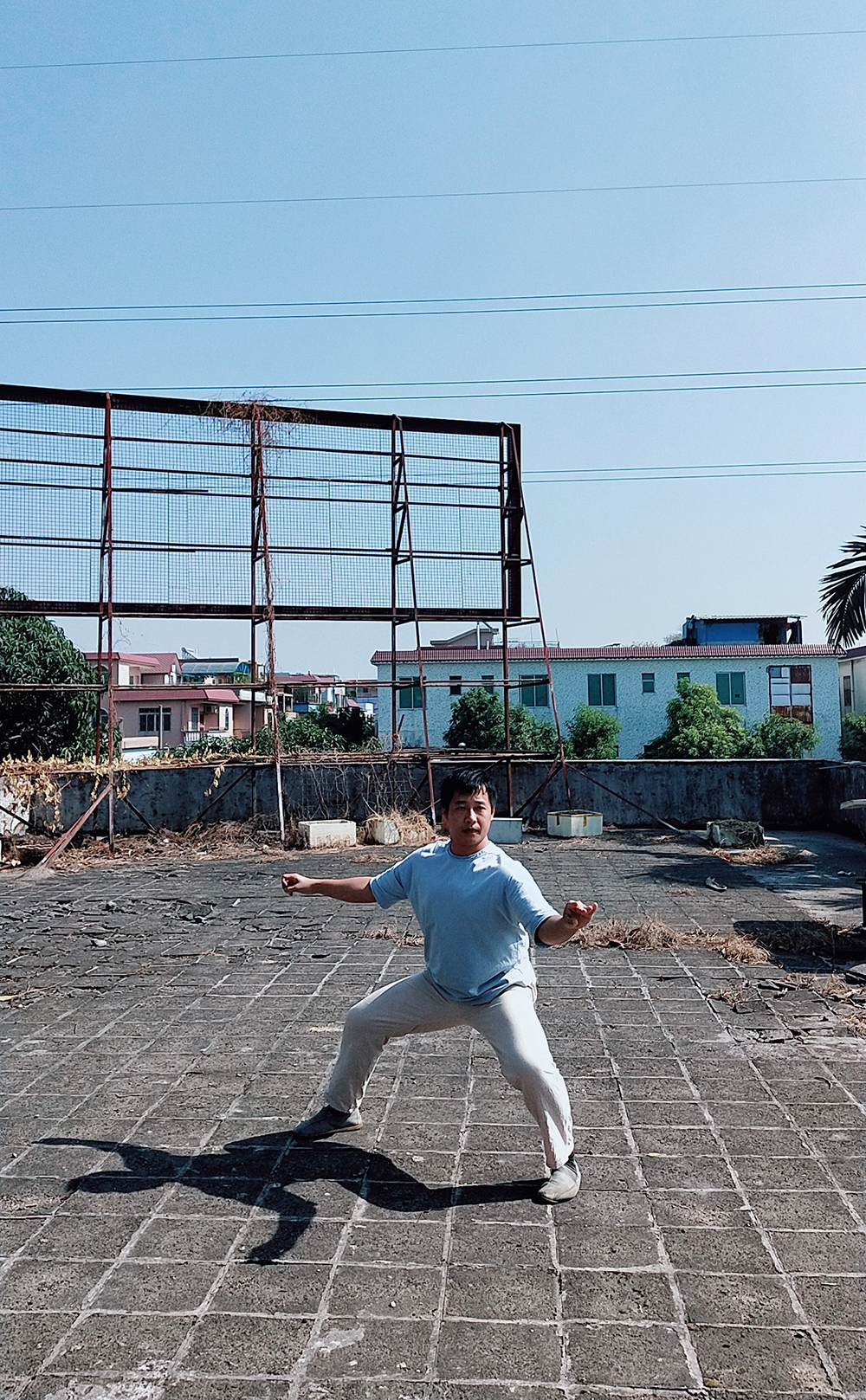 太极拳对周奕声来说是一个训练专注的过程,或者说一个修行的过程。“练拳本身其实是枯燥的,能把它顺下来往下走,状态和心态就不一样。”一个动作如何做到位,如何发力,各种情况都需要思考。专注力与耐心是思考之后最明显的所得,而这种所得在对下一代的教育方面也极为实用——如今,周奕声已成家立业,与妻儿在广州生活,做建材生意。平日里客户打电话时孩子吵闹,即使自己处在烦躁的情绪中,周奕声也能尽力保持冷静来“稳住”孩子。而从另一方面来讲,他认为自己练拳也是对下一代的培养,“我从小看我父亲练功,很感兴趣。现在我的孩子也会一直盯着看我练功,这就是一种特别好的传承。”