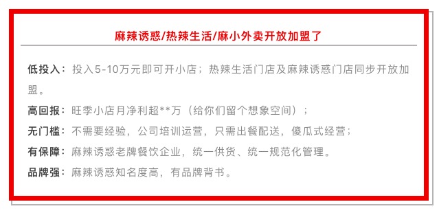 即便如此,11月22日麻辣诱惑旗下多个微信公号“麻小外卖订餐号”、“热辣生活”还在推送招募加盟商的内容。