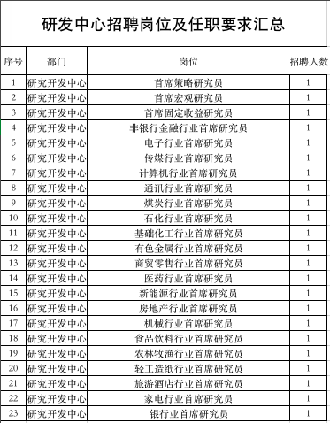 在上述五个岗位中,除投资银行事业部负责人外,其余均已通过外部招聘填补空缺。