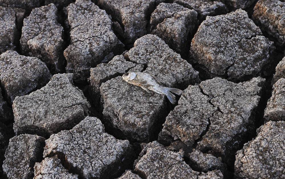 2019年10月30日,安徽省合肥市肥东县,在白龙镇门塘水库内,一条干死的鲫鱼。