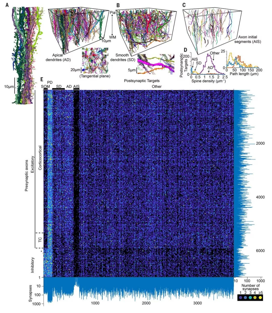 图3:突触后目标类和密集皮质连接组。
