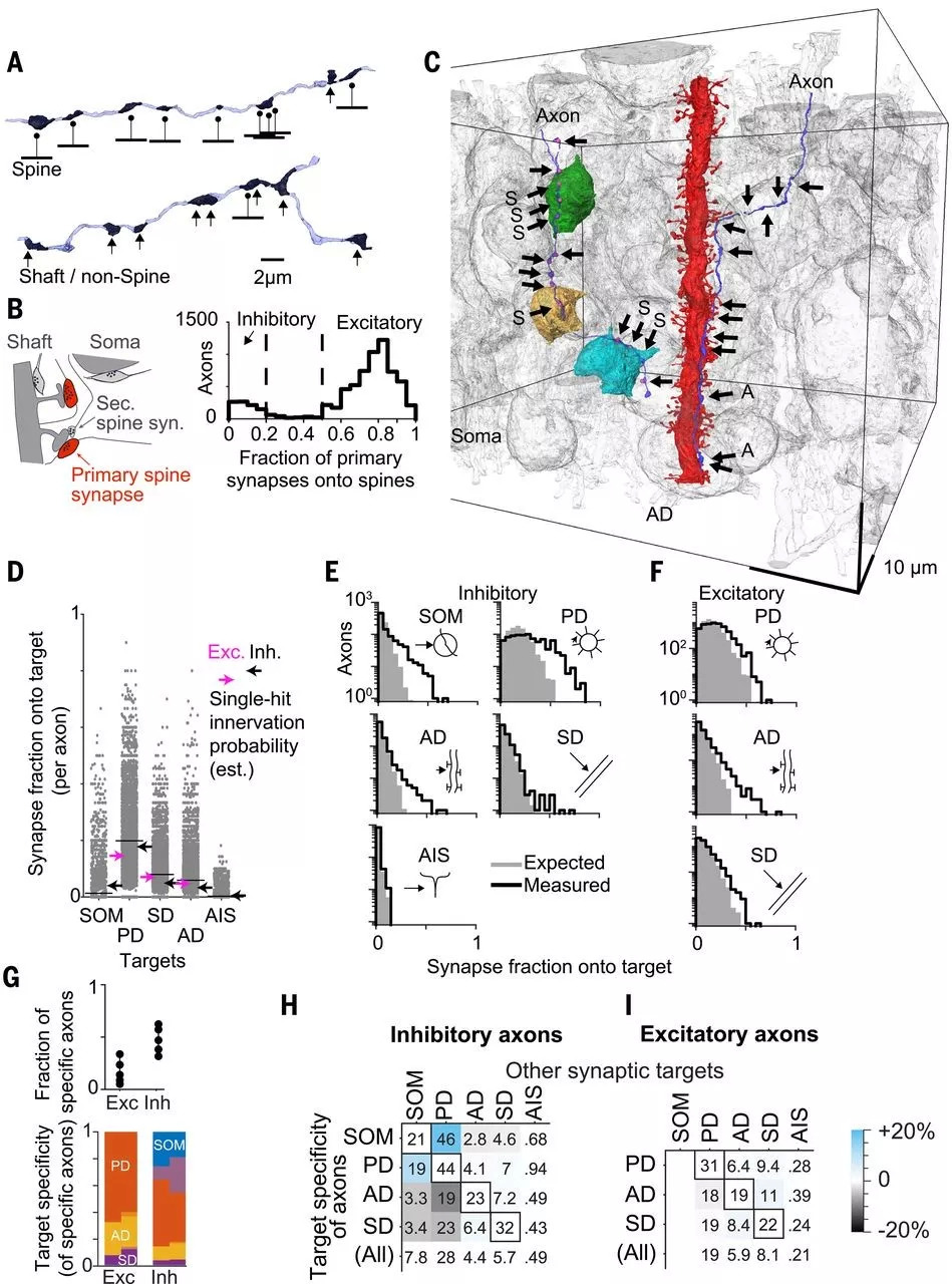 研究人员应用了优化的基于AI的图像处理和有效的人机交互,以分析约40万个突触和约2.7米的神经元电缆。他们在大约7,000个轴突和大约3,700个突触后神经突之间建立了一个连接体,产生的连接体比六十年前从小鼠视网膜获得的连接体大26倍。重要的是,这种重建同时要比应用于视网膜的重建大,效率要高出33倍。这种方法揭示了有关皮层皮质和兴奋性丘脑皮质连接的抑制性和兴奋性突触的连通性的信息。