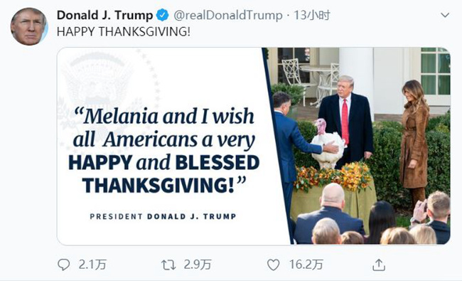 考虑到特朗普热衷发推文的习惯,为了避免引起怀疑,白宫特地为特朗普的Twitter设置了定时发送,放出了祝贺感恩节快乐的推文。推文发出时,特朗普正在前往阿富汗途中。