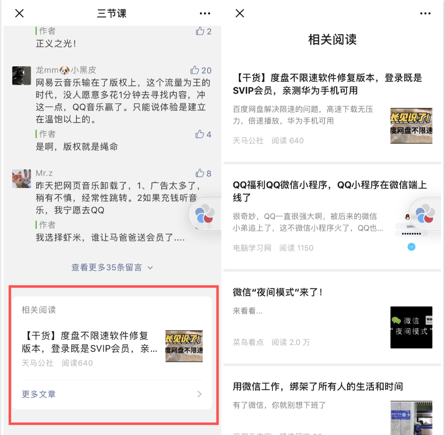 目前,在灰度测试中被选中的优质文章,可能会出现在其他文章底部的“相关阅读”模块。