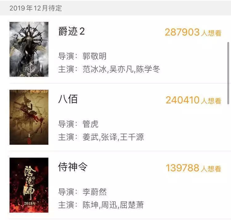 现在2019年的贺岁档片单尚未完全敲定,12月待定电影中还包括《爵迹2》《八佰》《侍神令》《刺杀小说家》等国产头部电影,光线彩条屋的动画电影《凤凰》,此前撤档的进口片《好莱坞往事》等也在其中。