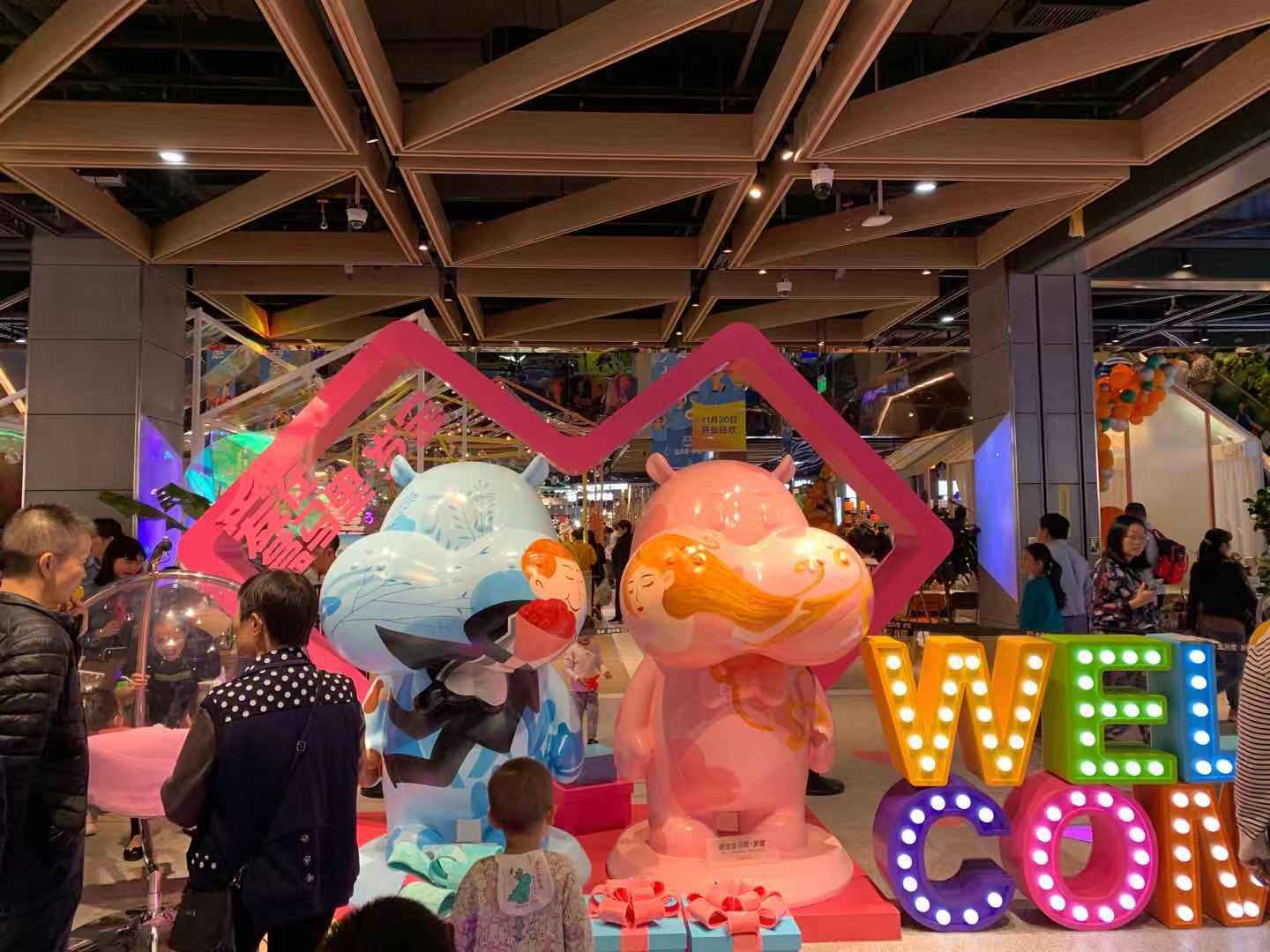 公共区域设置充满童趣的盒马ip形象玩偶,引得不少小朋友在此拍照。