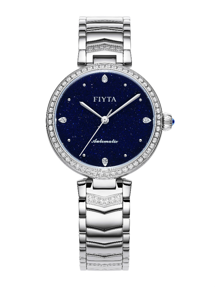 飞亚达全新心弦系列星空款腕表,保留了系列设计风格,曼妙的线条,凝练优雅的女性气质。表盘色泽比夜空更深邃,光影下收获星光璀璨,这是深蓝金砂石令人难以抗拒的美感。砂金石也承载着“机遇之石”的美好寓意,一直被认为能带来好运和能量。点缀于腕,既彰显皙白肤质,更是礼颂优雅女性对初心的笃定以及对未来的憧憬。表盘3、6、9、12点位时标为水滴形态,随深蓝砂金石的变幻璀璨,呈现如水流淌的光影质感。12点位镶嵌一枚真钻,在表盘衬托下,钻石闪烁的光芒顺增数倍,演绎臻美韵味,与表圈镶嵌交相辉映。圆润表壳的柔美线条沿着表耳轮廓向下收拢,经细致抛光,营造出通透的金属光泽。南瓜形状表冠镶嵌一枚蓝水晶,对星空的真挚向往,不止于正面一处。表带延续源于晚礼服V领的别致造型,带体融合镶嵌工艺,萦绕于腕,以珠光靓丽,流露女性秉持初心,演绎真我的优雅魅力。