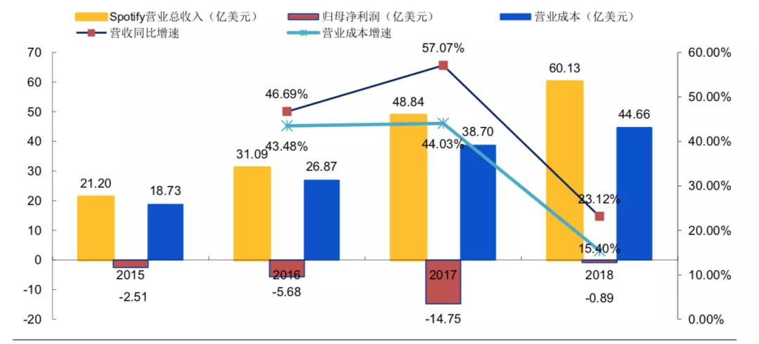 我在《行业复苏,身处囚徒困境的网易云音乐们该咋办》里提过,Spotify 上市前后,繁荣之下实有隐忧: