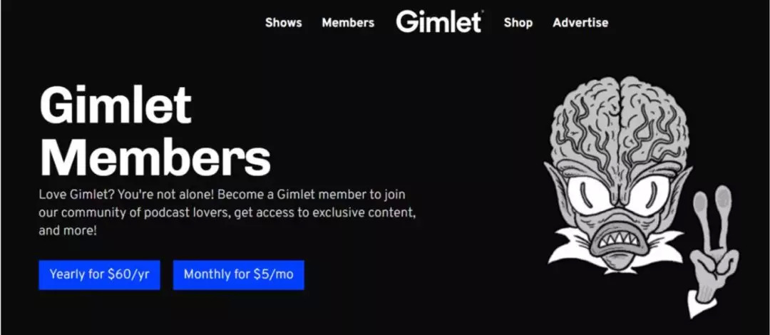 成立于 2014 年的 Gimlet Media 专注叙事内容的播客业务,代表作包括《Homecoming》、《StartUp》以及《Reply All》,其中《Homecoming》还被亚马逊改编成了系列电视剧。
