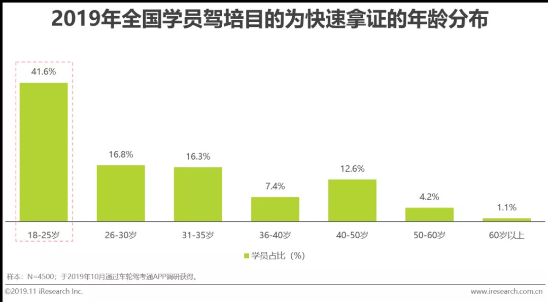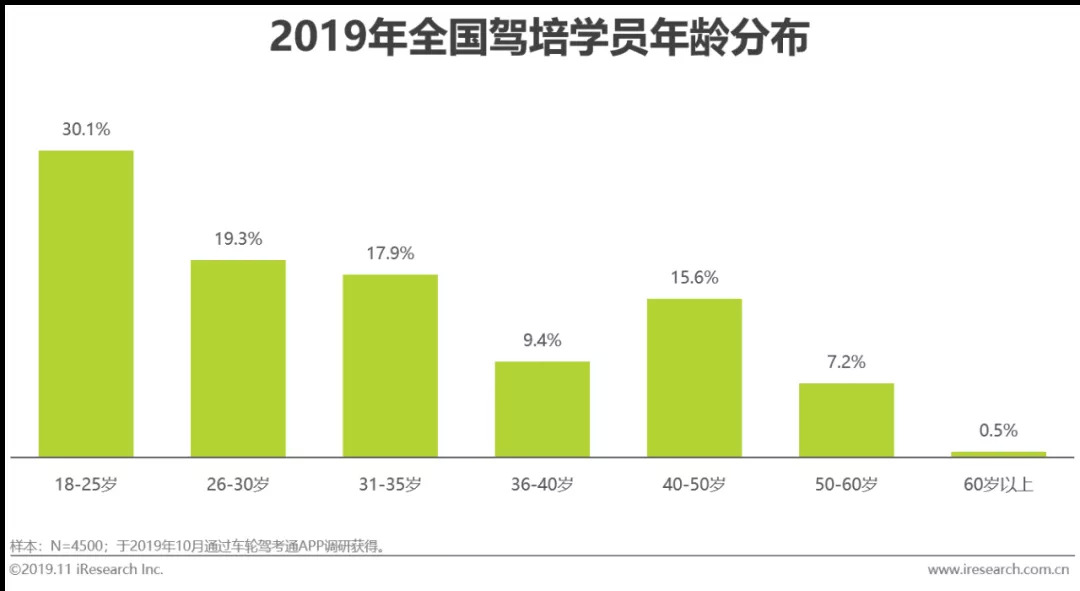 随着机动车保有量和驾驶员人数的不断上升,催生出日益增多的汽车服务需求,比如驾培需求。根据调研显示,2019年驾培学员以男性为主,年轻化成为常态,18-25岁的年轻人占比最大,驾培教育整体受众向年轻化倾斜。