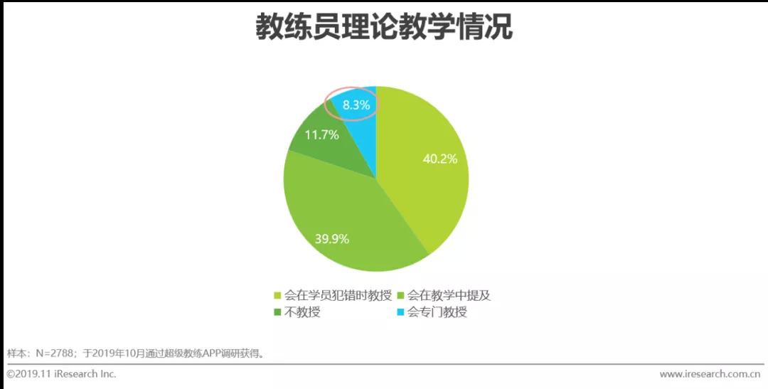 (1)理论教学:理论课程的落实一直以来都是驾驶培训教学过程中的难点。根据交通部数据显示,2018年全国共有机动车驾驶教练员91.8万人,而理论教练员只占其中的6.3%,且同比2017年下降了10.7%,理论教学面临人手不足的情况。本次调研也显示仅有8.3%的教练员表示自己会专门教授理论知识。不过,好的现象是,有40%的受访教练员表示虽然没有完整的理论课程,但他们会在教学中主动教授一些理论知识。