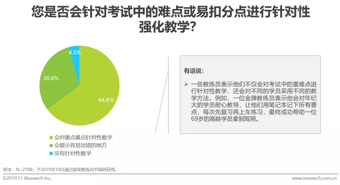 (3)重点难点针对讲解:学员在学车过程中有一些共性的难点和易出错点,他们希望教练员能够对这些重点难点进行针对性教学,以帮助他们熟练掌握驾驶技能并通过考试。根据调研,大部分教练员会或多或少对机动车驾驶员考试中的重点难点进行针对性教学,这一做法值得肯定。