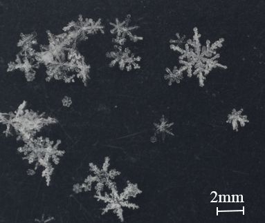 水汽不断地凝聚在雪雏形冰晶体上,当冰晶达到了足够的尺寸,并可能与其他冰晶合并,到达一定重量,然后以雪的形式飘落下来。