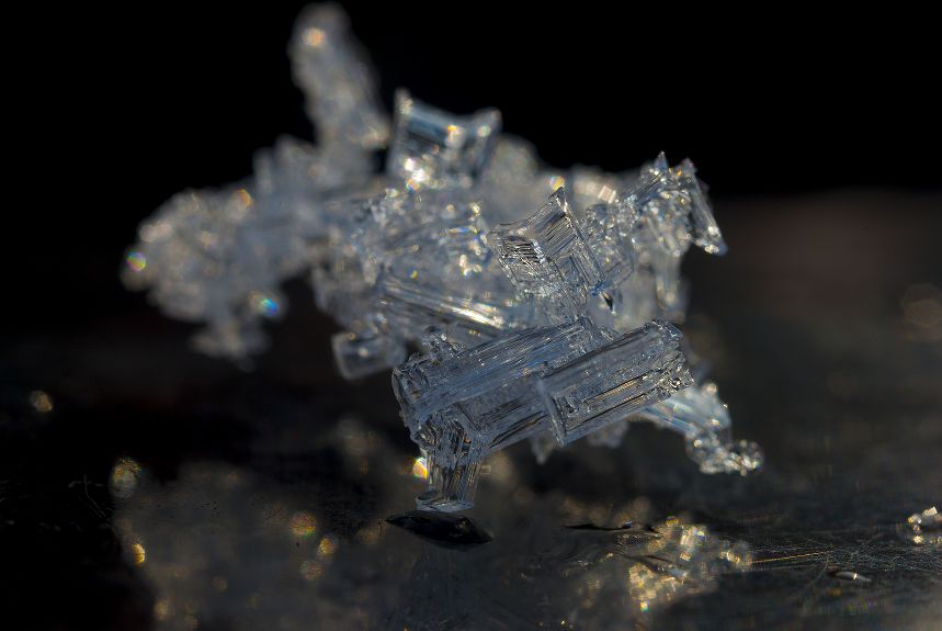 当雪花在不同的温度和湿度的大气中移动时,会出现复杂的形状。