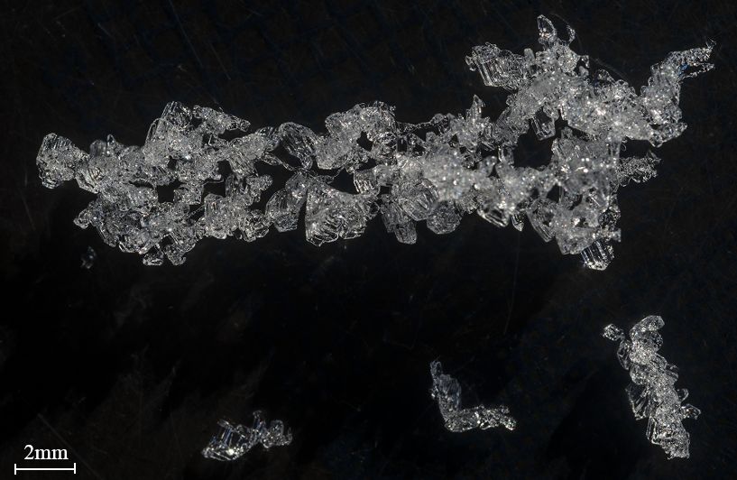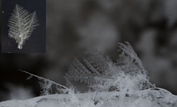 单一的多面体雪晶体和多个晶体的烧结(摄影: 范书财)