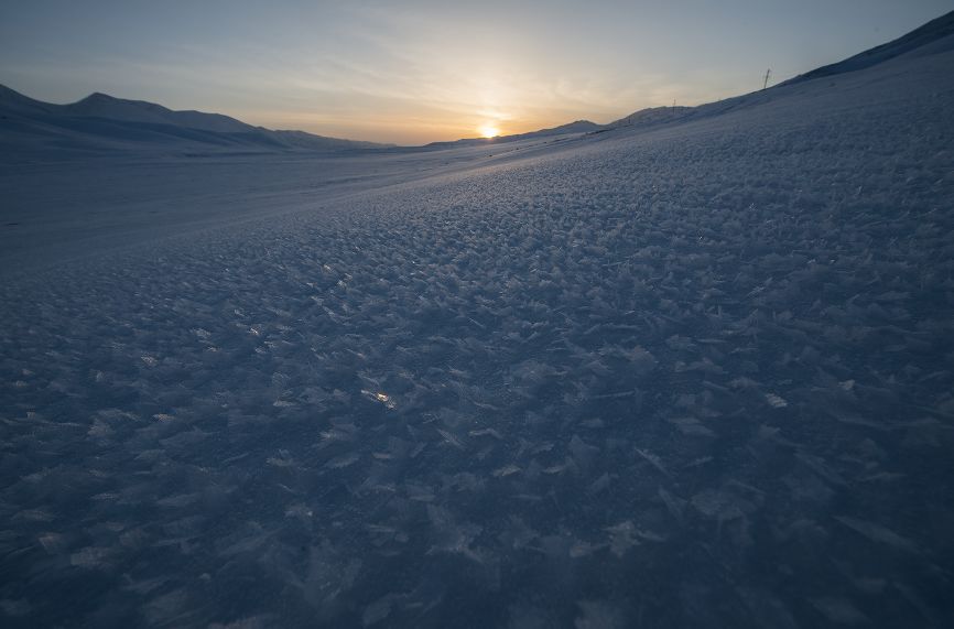 雪面上长出来的表霜(摄影: 范书财 2019年2月28日拍摄于昭苏)