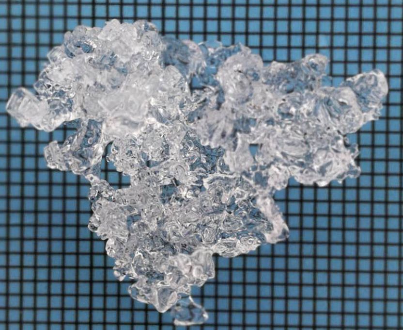 水汽不断粘附在多面体雪晶体上,晶体之间相互的烧结作用不断加强。雪晶体颗粒逐渐变大,并且形成有迷宫状、玛瑙状、金字塔状、钻石状、手枪状等各种规则形状的雪晶体,晶体直径一般为3-10mm。