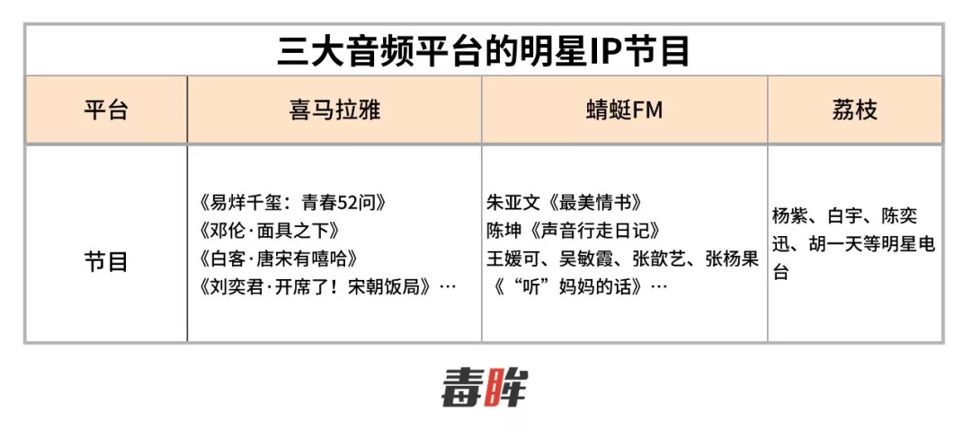 多位相关从业者也向毒眸证实了这一点,称目前平台发力明星IP节目,除了吸引粉丝外,还希望更多的受众是被内容干货所吸引。“节目如果纯靠明星的粉丝流量其实并不长久,在线音频如果想要打破不同的圈层用户,靠的还是内容价值。”