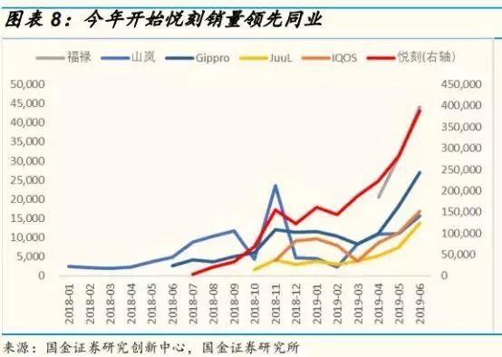 一方面,悦刻作为已占据较大市场的电子烟品牌,正在苦苦挣扎。这是因为,悦刻的主要销量来源于线上渠道。据国金证券研究创新中心发布的统计数据显示,2019年上半年,悦刻在销售量和销售额方面一直稳居行业首位。上半年,悦刻实现销售额1.77亿元,销量138.55万件。