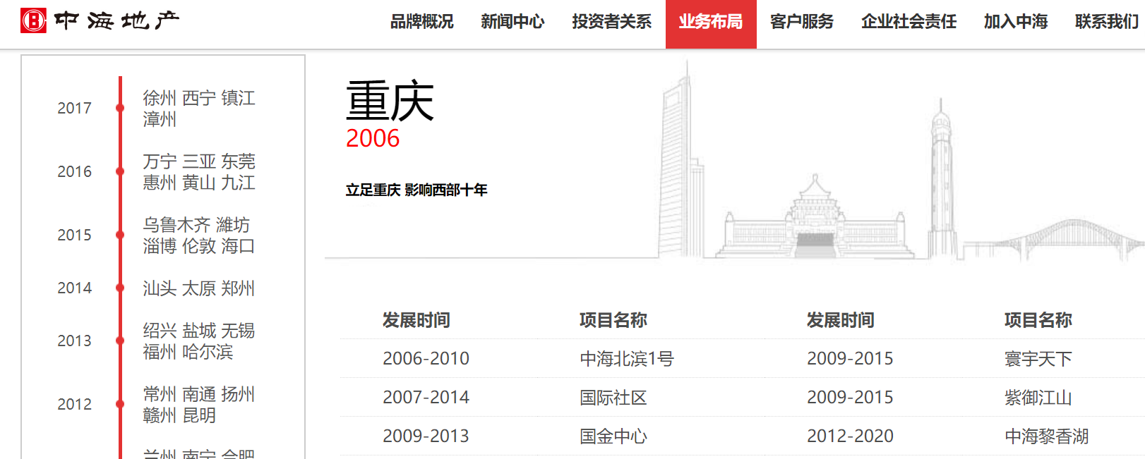 据中海地产官网显示,进入重庆13年来,一共开发完成有6个项目,中海黎香湖为其中之一。