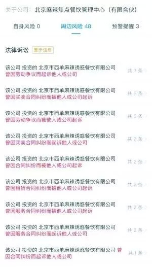 业内媒体也相继发布,目前麻辣诱惑陷入关店风潮,旗下的多个公办公司陷入劳动争议、租赁合同等多项纠纷,十余起劳动纠纷案件;并且在北京的部门门店出现收缩的情况。