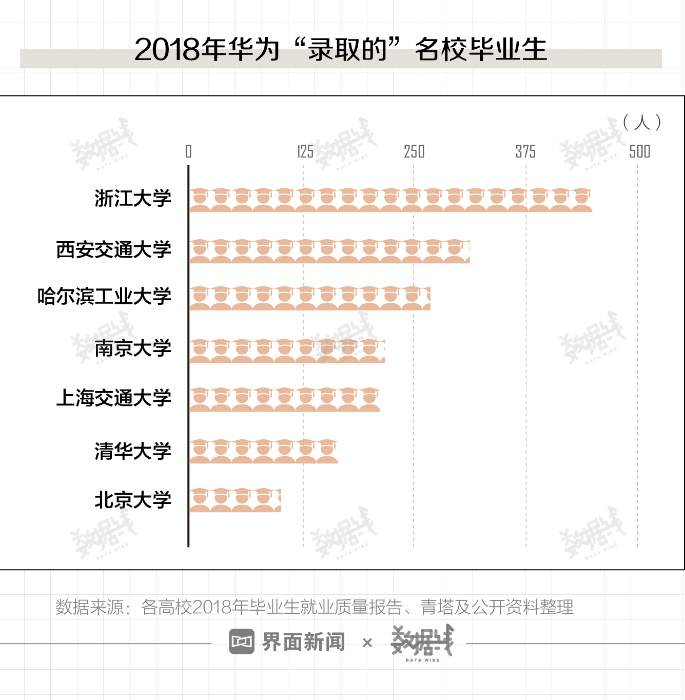 同年,华为共计向上述8所高校毕业生发放了1682份Offer。其中,来自浙江大学的毕业生最受其“青睐”。