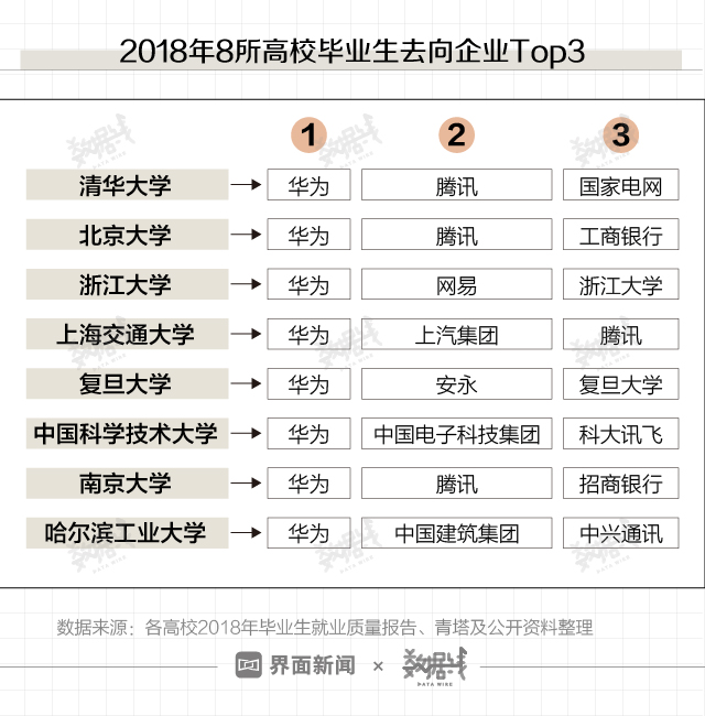 据此前21世纪经济报道,2018年,华为成为清华大学等8所名校的“首选去向”。